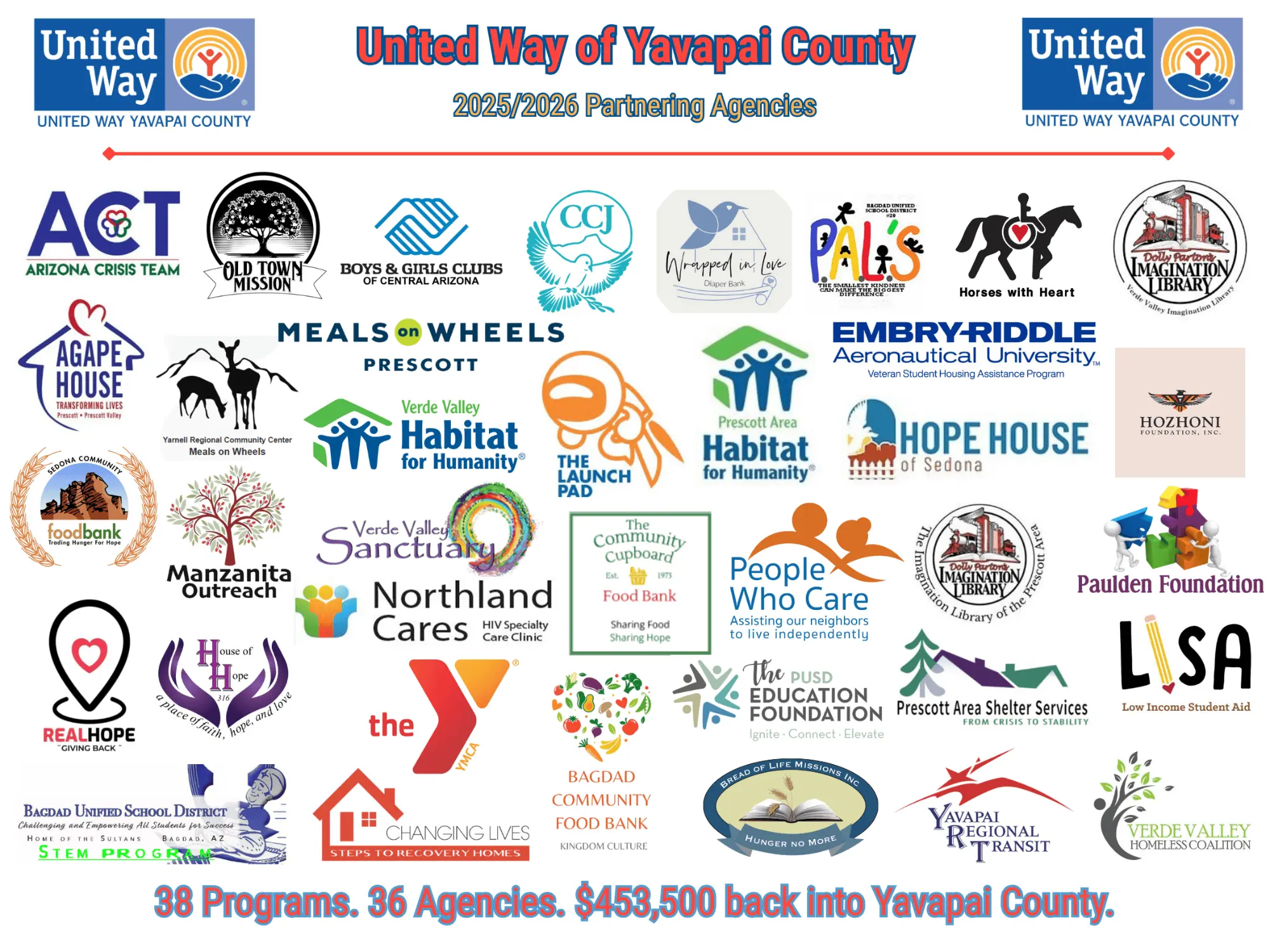 UWYC’s annual Community Impact grant cycle is the organization’s strongest method for supporting and strengthening Yavapai County. The generous donations UWYC receives from individuals and businesses throughout the county make this grant cycle possible. Each qualifying agency must: currently hold status as a 501©3 or school, reside and offer their services within Yavapai County, and their program must focus on Health, Education, or Financial Stability. Together we are Standing United and producing Results You Can See for Yavapai County!
